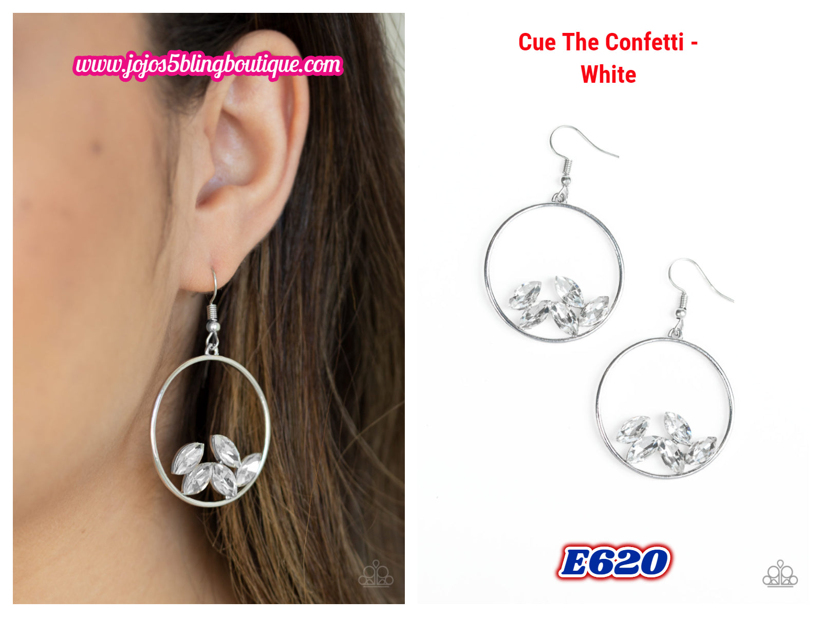 Glittery white marquise-cut rhinestones collect at the bottom of an airy silver hoop for a glamorous look. Earring attaches to a standard fishhook fitting.