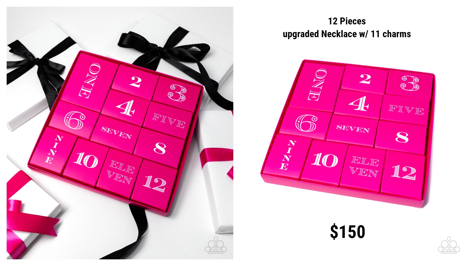 Keeping the tradition alive, we're elevating the holiday countdown with a daily dose of dazzle in our exclusive Advent Calendar! This luxe Paparazzi Pink box hides twelve dazzling surprises, each tucked behind a white, number-embellished door—11 unique, interchangeable rhodium-plated charms and 1 stunning rhodium-plated necklace base for endless styling options. Whether you’re gifting it or keeping it all to yourself, this advent calendar delivers twelve opportunities to sparkle—no matter the season! The charms are timeless and not holiday-themed, which means this confidence-curating countdown can be used throughout the year. Main box measures approximately 8 1/2" x 8 1/2.