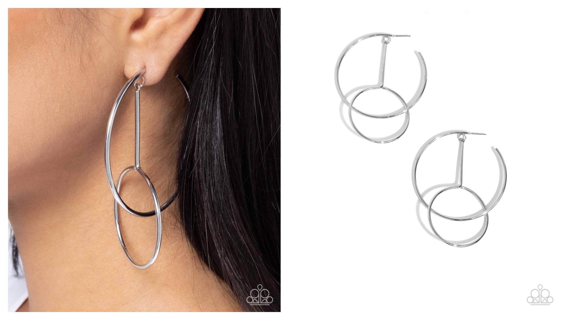 A classic silver hoop curls around the ear for a simply stunning statement. A silver rod connects along the uppermost curve of the silver hoop, giving way to an additional hoop of silver that curls around the larger, primary silver hoop for an abstract, mesmerizing lure. Earring attaches to a standard post fitting. Hoop measures approximately 2 1/4" in diameter.