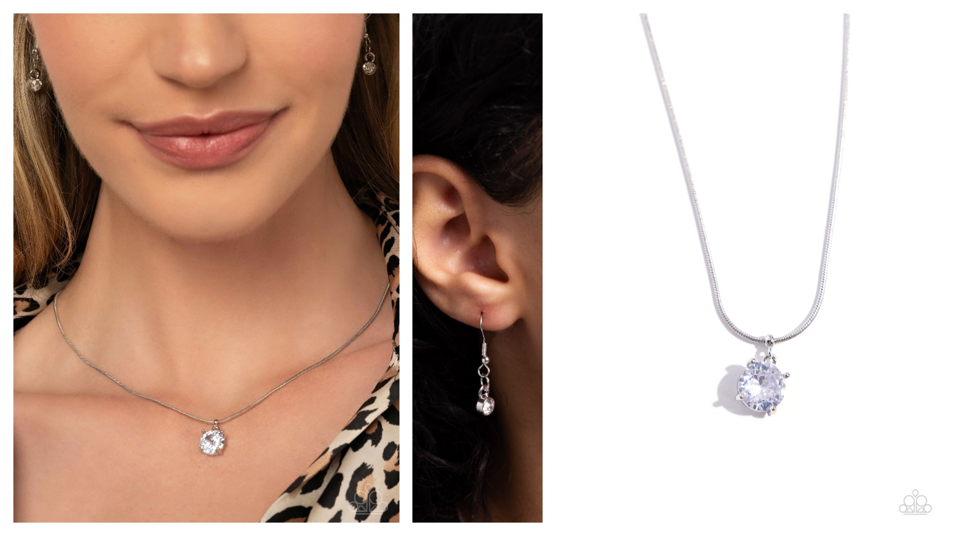Set in pronged silver fittings, a faceted, glittery white gem glides along a silver snake chain for a beautiful basic. Features an adjustable clasp closure.