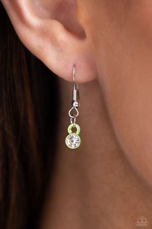 Bordering an emerald-cut white gem, round white gems are pronged in place along electric green frames that gradually add on metallic green spikes as they coalesce towards the center of the neckline for an intense, electric fringe. Features an adjustable clasp closure.