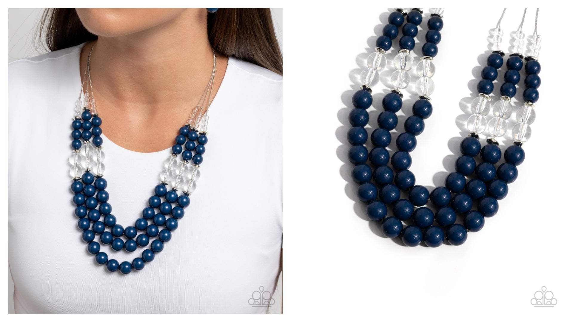 Strands of polished navy beads are paired with bubbly clear beads, creating a bold and eye-catching design. Features an adjustable clasp closure.