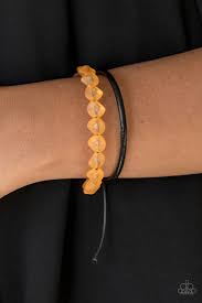 Featuring an opaque finish, a strand of faceted orange beads and a strand of shiny leather cording wrap around the wrist, creating dainty layers. Features an adjustable sliding knot closure.